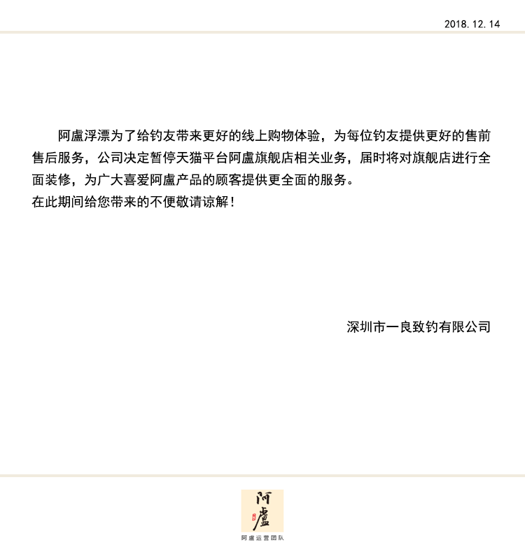 關(guān)于阿盧旗艦店通告